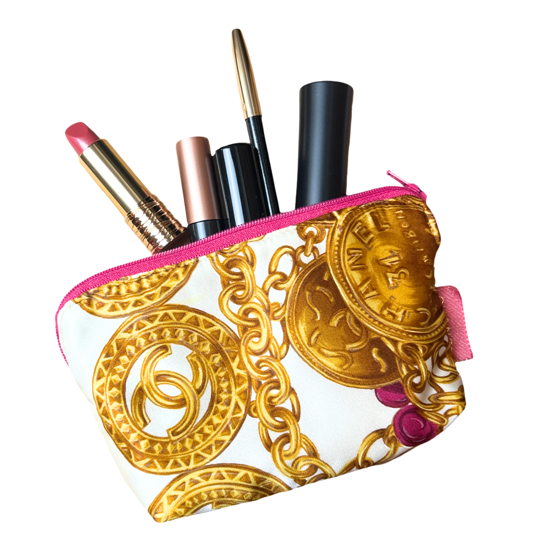 CC Logo Gold Coins Vintage Silk Scarf Beauty Bag