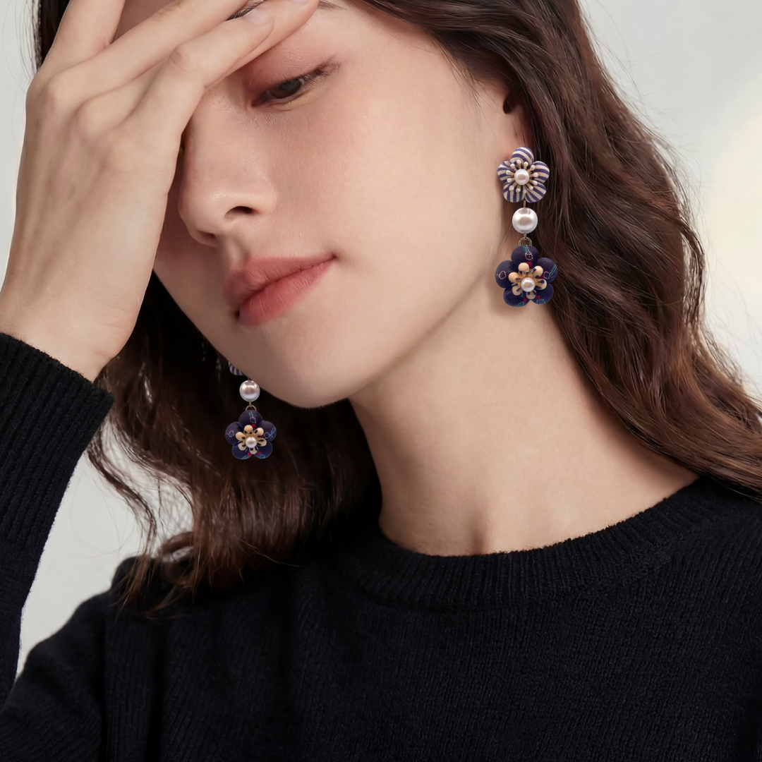 Horsebit Flower Vintage Silk Necktie Chandelier Earrings