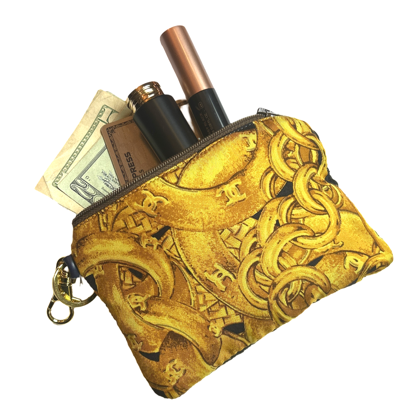 Reimagined from the world’s finest collection of vintage Chanel scarves, our Coffee Run Keychain Bag is perfectly sized for when you only need your credit card, a few bills, and your lip gloss.