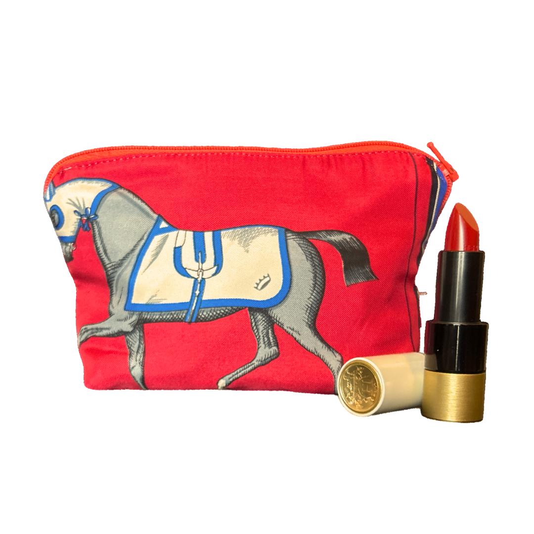 Couvertures et Tenues du Jour Red Vintage Silk Scarf Beauty Bag