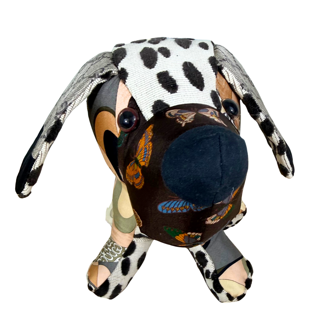 Vintage Gucci silk scarves and velvet cloth handmade into a one of a kind animal.  Non-Allergenic polyfill stuffing.  For decorative use only.