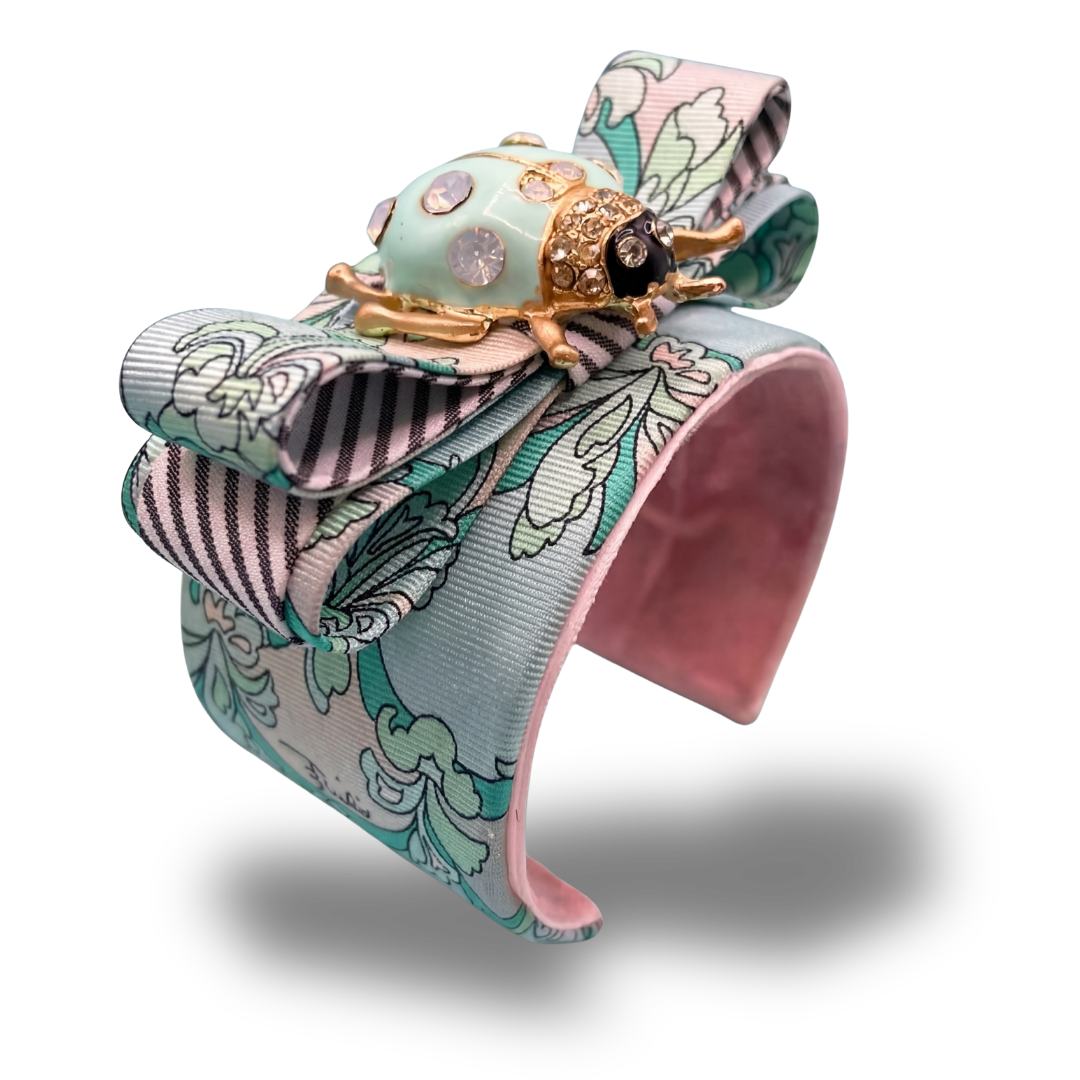 Lady Bug Vintage Silk Necktie Cuff Bracelet