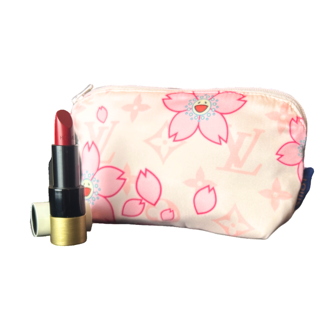 LV Monogram Cherry Blossom Vintage Silk Scarf Beauty Bag